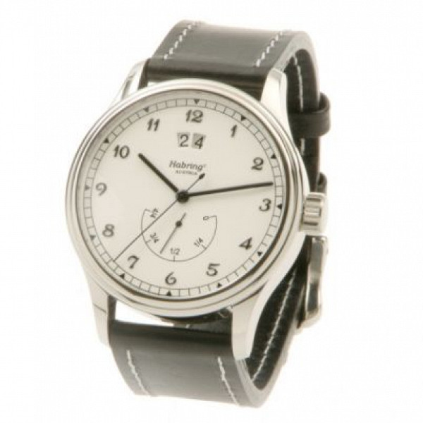 - White artificial enamel dial with galvanoblack hour markers and hands